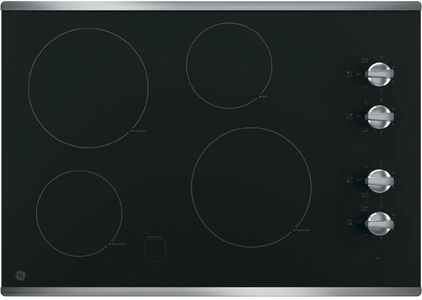 GE® 30" Stainless Steel Built In Electric Cooktop features four radiant cooking elements, power Boil Elements, Keep Warm Setting, Melt Setting, hot surface indicator lights, cooktop "On" indicator light, and stainless steel trim.Read More
